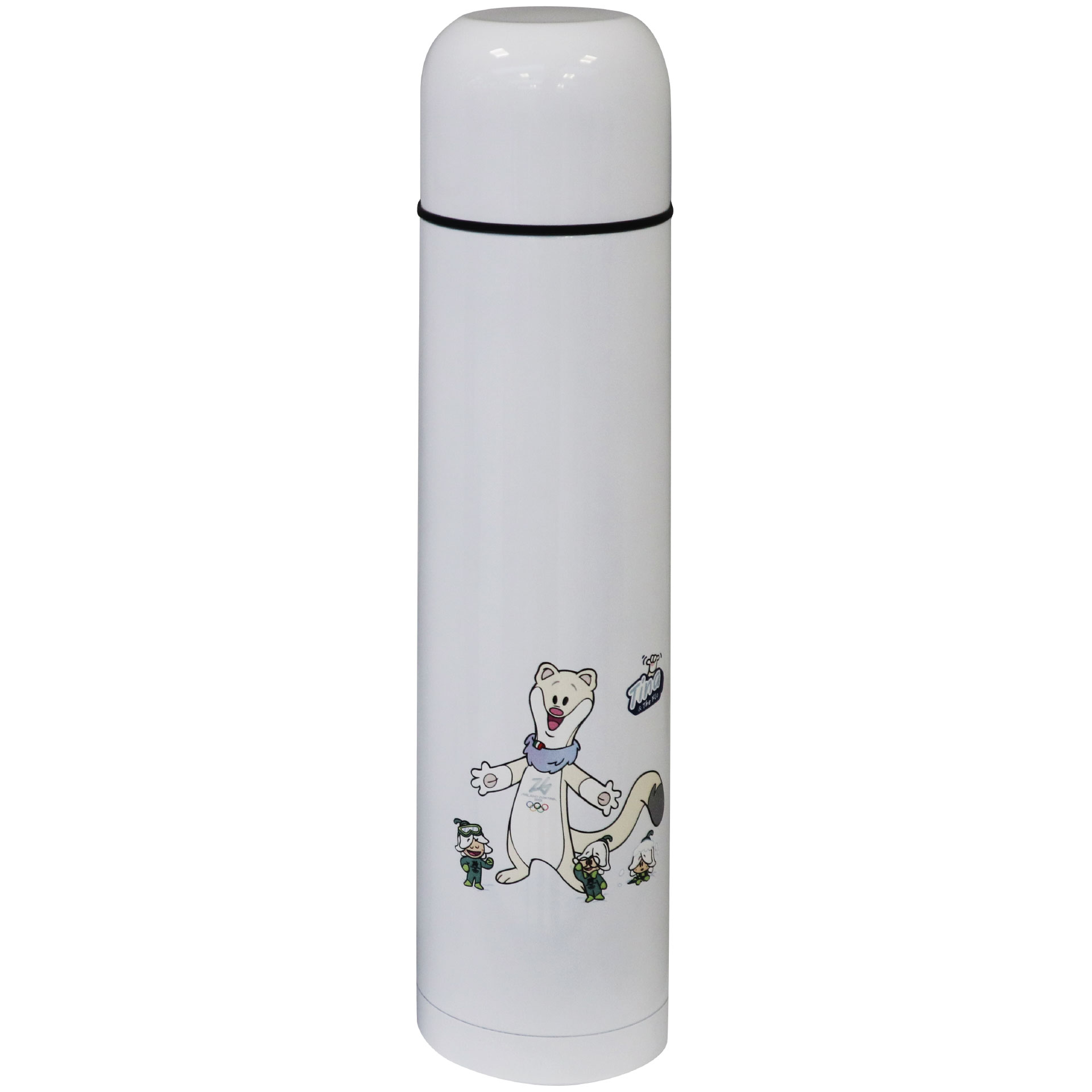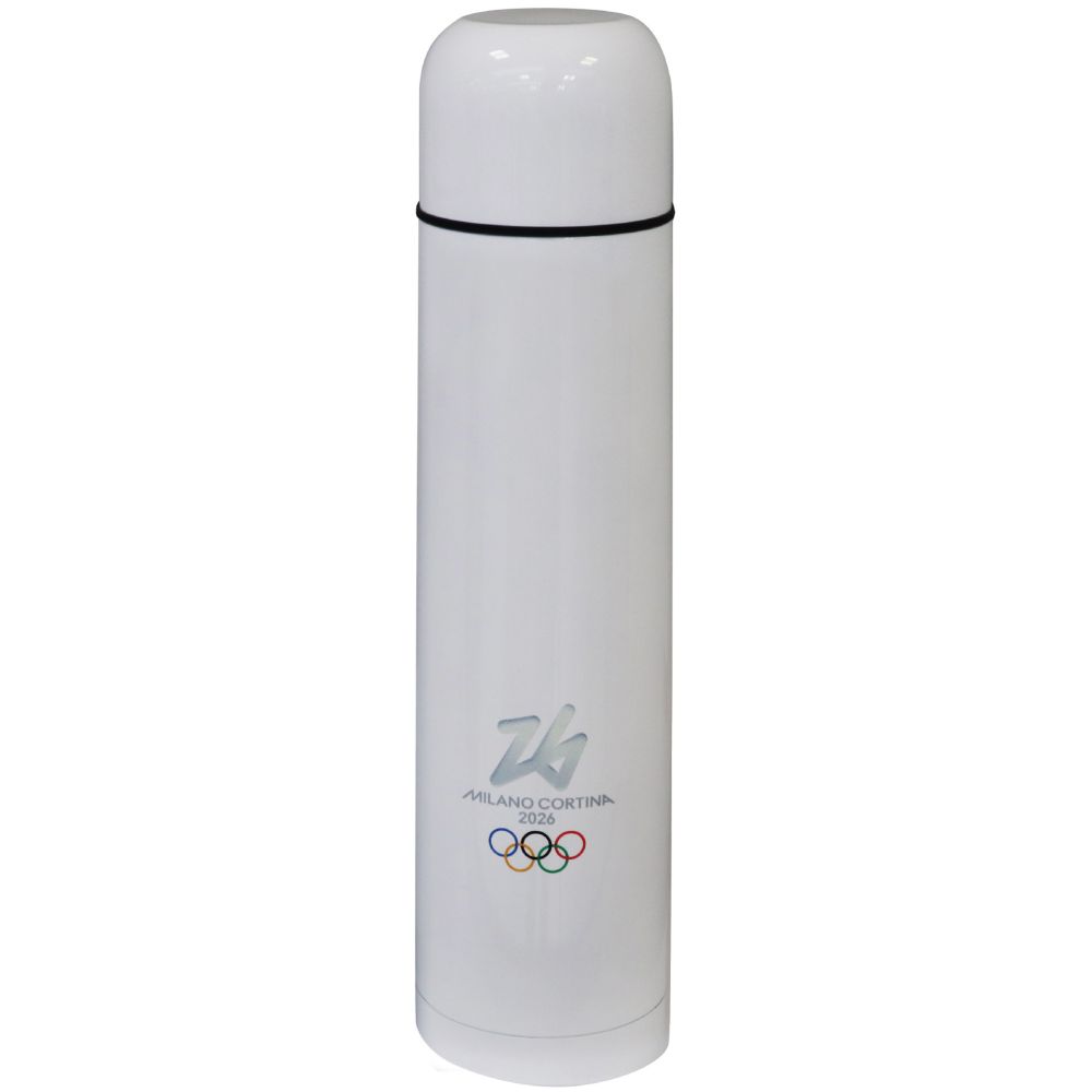 THERMOS ACCIAIO INOX BIANCO 1 LT. OLYMPIC MASCOT TINA COLORATO STAMPATO
