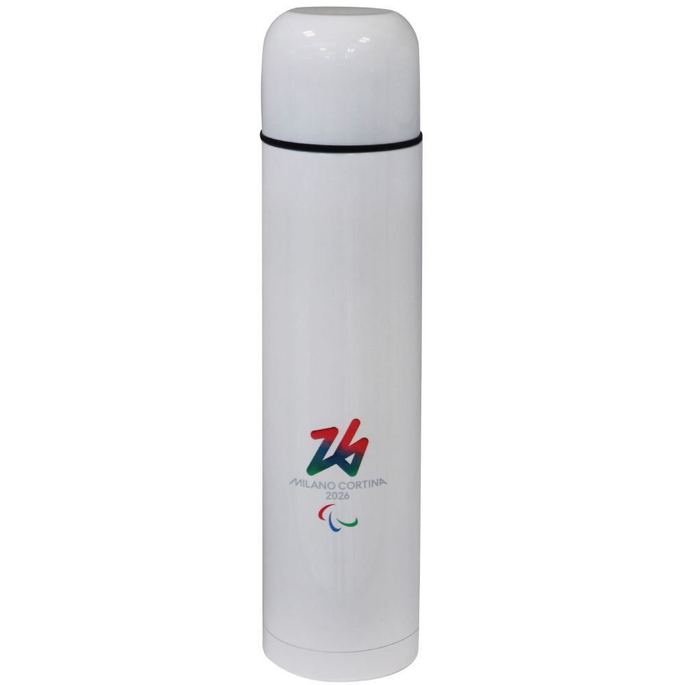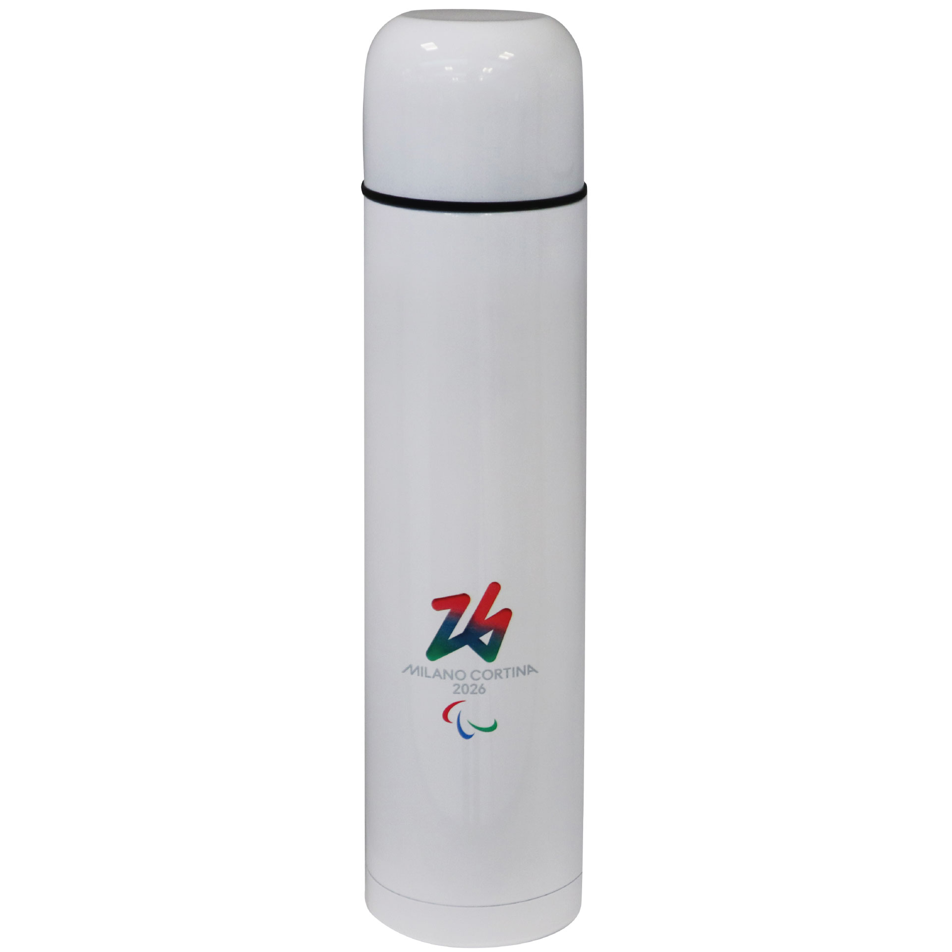 THERMOS ACCIAIO INOX BIANCO 1 LT. PARALYMPIC MASCOT MILO COLORATO STAMPA