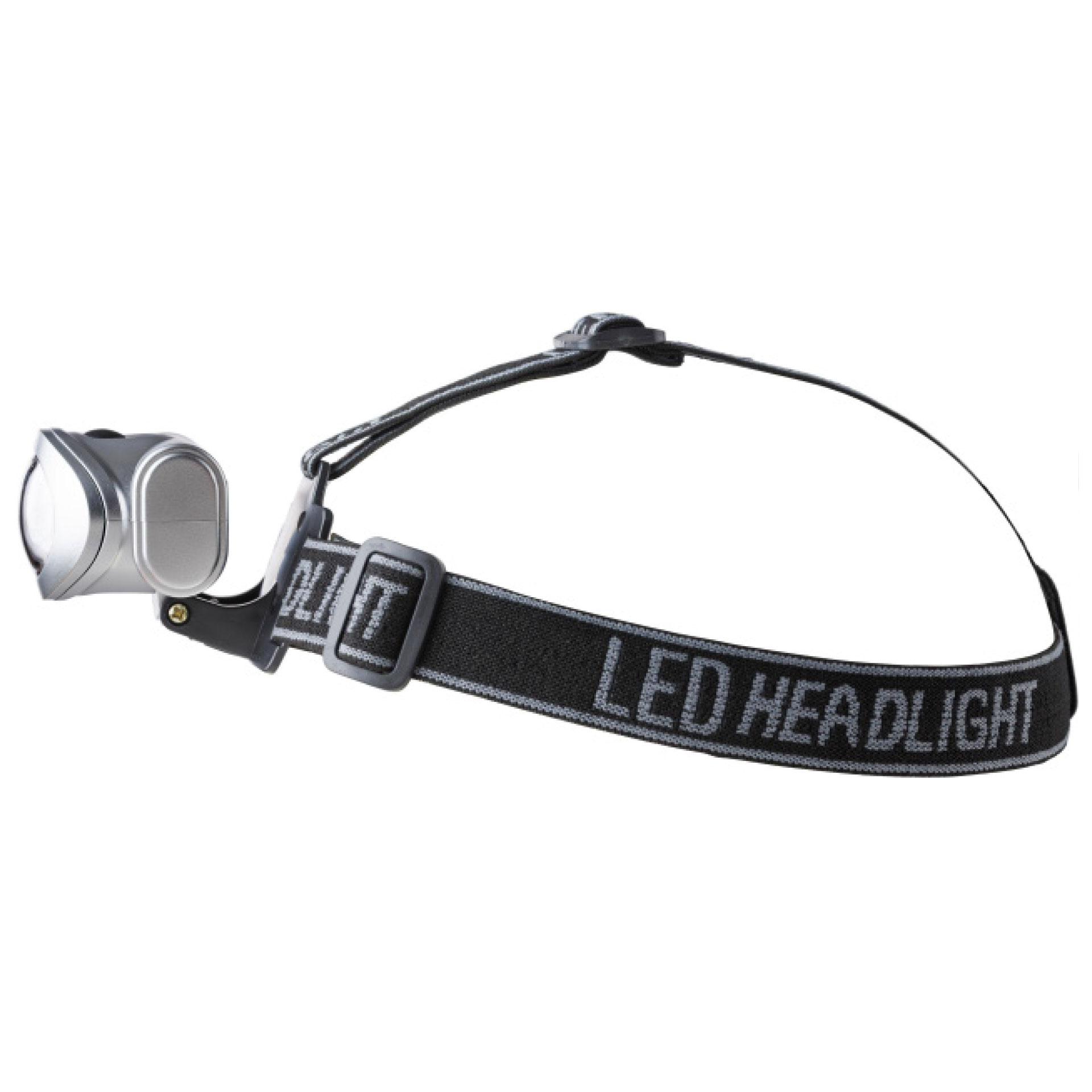 TORCIA DA FRONTE 5 POTENTI LUCI LED, LUCE CON FUNZIONE NORMALE E LAMPEGGIANTE, PULSANTE ON/OFF, DIREZIONE DEL RAGGIO REGOLABILE, CINTURA REGOLABILE A 3 DIVERSE POSIZIONI IN NYLON CON PIASTRINA PILE NON COMPRESE. DIMENSIONE 5,5 X 4 X 2,2 CM