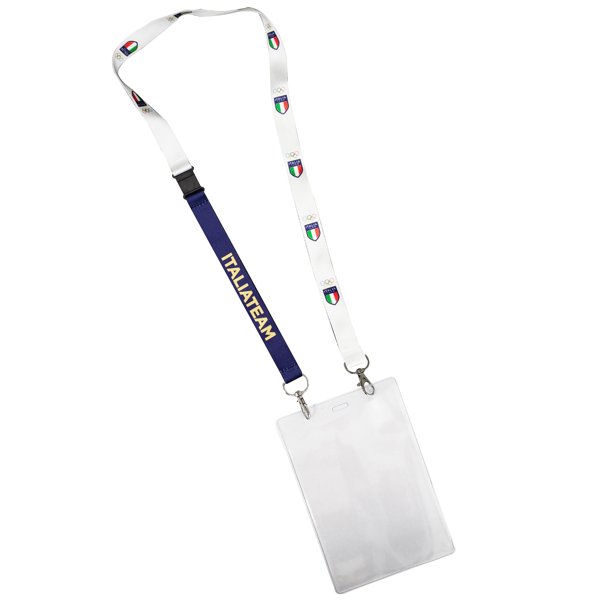 PORTAPASS CON BUSTINA NASTRO 20 MM OLYMPIC+ITALIA TEAM EMBLEMA COLORATI