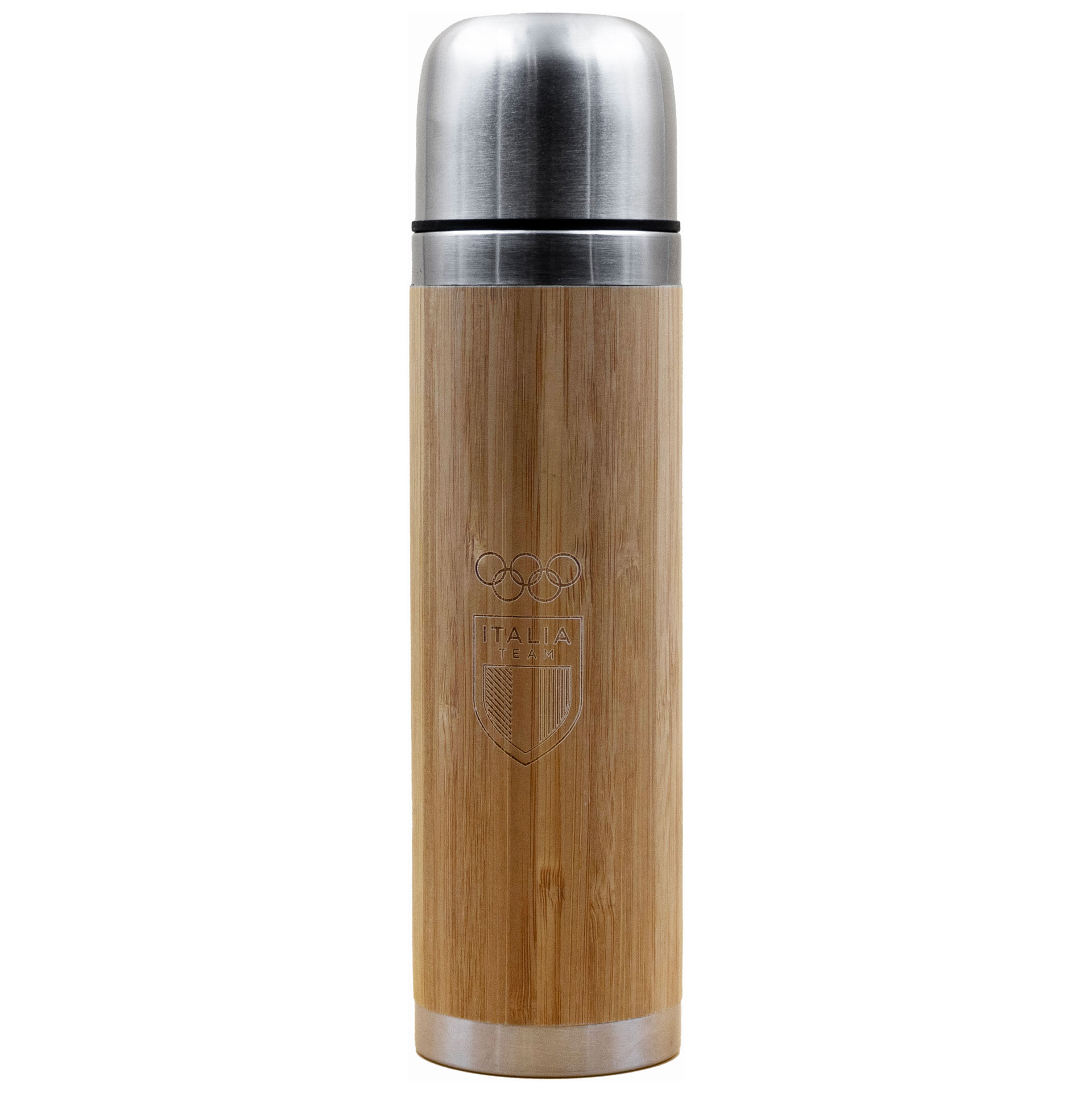 THERMOS ACCIAIO INOX E BAMBU' 400 ML OLYMPIC E ITALIA TEAM EMBLEMA MONOC